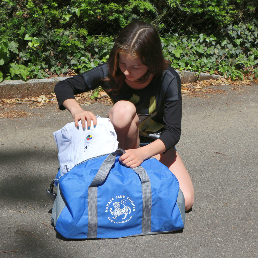 À ce propos, ils sont assez grands pour contenir un kimono et des gants, sacs noirs ou bleus (designs différents), avec le logo du club, les sacs sont en promotion à moitié prix : 10.- au lieu de 20.- ! Pratique pour ne rien oublier…
